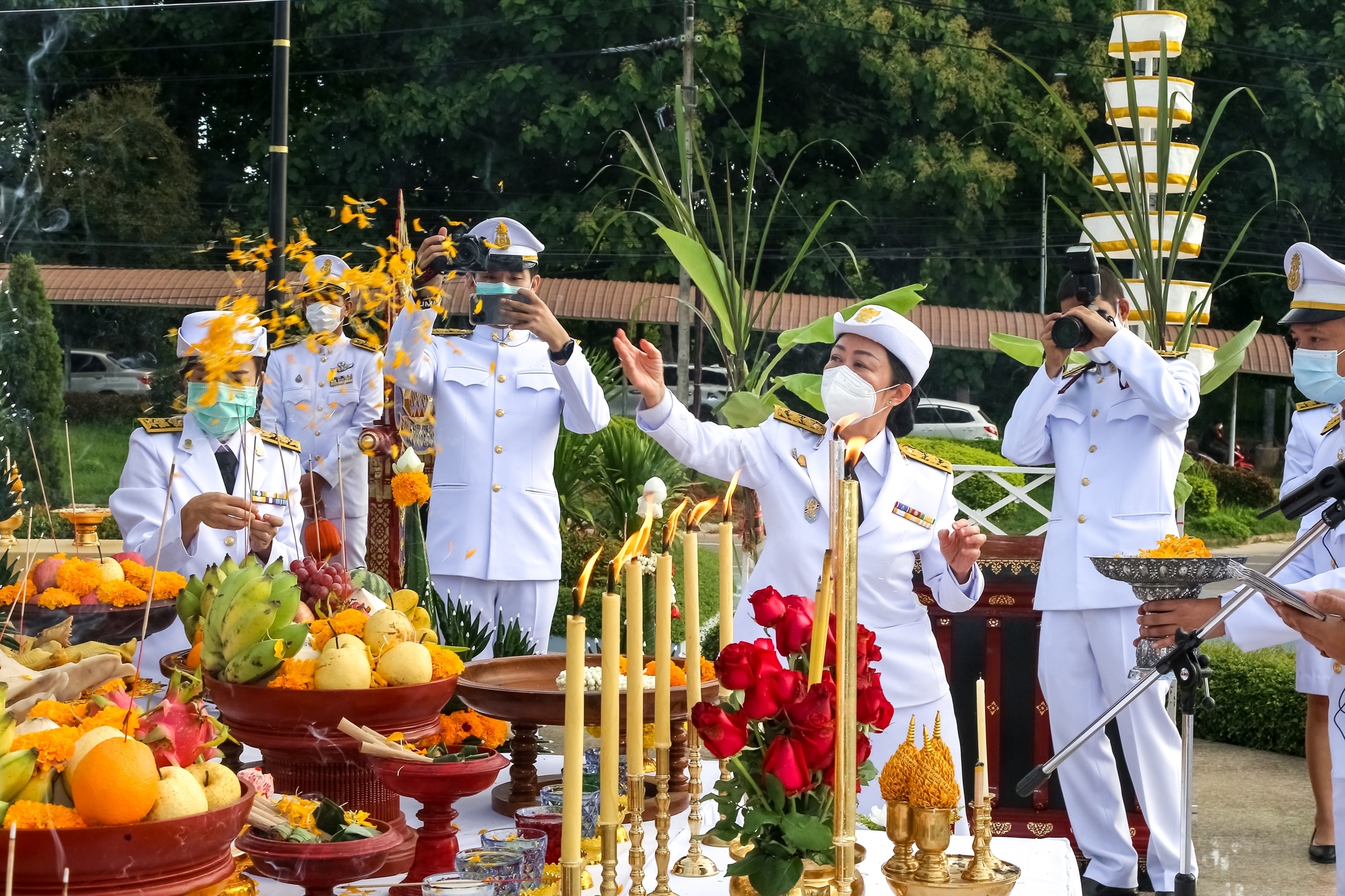 ในการนี้ อธิการบดีมหาวิทยาลัยพะเยา ประธานในพิธี เปิดกรวยดอกไม้พานธูปเทียนแพ จุดเครื่องทองน้อย วางพานพุ่ม พร้อมกับถวายเครื่องสักการะบูชา เบื้องหน้า พระบรมราชานุสาวรีย์สมเด็จพระนเรศวรมหาราช เพื่อรำลึกพระมหากรุณาธิคุณ และแสดงความจงรักภักดีต่อสถาบันพระมหากษัตริย์ พร้อมร่วมถวายพานพุ่มทอง – พุ่มเงิน สักการะ แด่องค์สมเด็จพระนเรศวรมหาราช