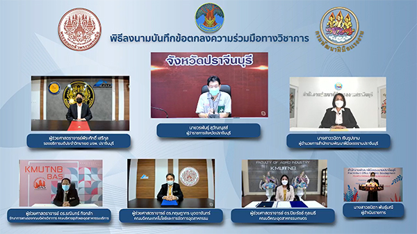 มหาวิทยาลัยเทคโนโลยีพระจอมเกล้าพระนครเหนือ (มจพ.) วิทยาเขตปราจีนบุรี กับ สำนักงานพัฒนาฝีมือแรงงานปราจีนบุรี กรมพัฒนาฝีมือแรงงาน จัดพิธีลงนามบันทึกข้อตกลงความร่วมมือทางวิชาการ ผ่านระบบออนไลน์ และถ่ายทอดสดผ่าน FITM Facebook page ผศ.พีระศักดิ์ เสรีกุล รองอธิการบดีประจำวิทยาเขต มจพ.ปราจีนบุรี ปฏิบัติการแทนอธิการบดี พร้อมกับ ผศ.ดร.กฤษฎากร บุดดาจันทร์ คณบดีคณะเทคโนโลยีและการจัดการอุตสาหกรรม ผศ.ดร.ปิยะรัชช์ กุลเมธี คณบดีคณะอุตสาหกรรมเกษตร และ ผศ.ดร.รณินทร์ กิจกล้า รักษาการแทนรองคณบดีฝ่ายวิชาการ คณะบริหารธุรกิจและอุตสาหกรรมบริการ ได้ร่วมลงนามความร่วมมือทางวิชาการ กับ นางสาววนิดา เงินรูปงาม ผู้อำนวยการสำนักงานพัฒนาฝีมือแรงงานปราจีนบุรี กรมพัฒนาฝีมือแรงงาน โดยได้รับเกียรติจาก นายวรพันธุ์ สุวัณณุสส์ ผู้ว่าราชการจังหวัดปราจีนบุรี เป็นประธานในพิธีลงนามบันทึกข้อตกลงความร่วมมือทางวิชาการ ผ่านระบบออนไลน์ และถ่ายทอดสดผ่าน FITM Facebook page การลงนามความร่วมมือในครั้งนี้ มจพ.วิทยาเขตปราจีนบุรี และสำนักงานพัฒนาฝีมือแรงงานปราจีนบุรี กรมพัฒนาฝีมือแรงงาน ได้ตระหนักถึงความสำคัญของการบูรณาการความร่วมมือด้านการพัฒนากำลังแรงงานระหว่างภาคการศึกษากับการพัฒนาฝีมือให้ได้มาตรฐานสอดคล้องกับความต้องการของตลาดแรงงานของจังหวัด ทั้งในเชิงปริมาณและคุณภาพ ตลอดจนเพื่อรองรับต่อการขยายตัวของระบบเศรษฐกิจในอนาคตและรองรับประเทศไทย 4.0 เมื่อวันที่ 26 สิงหาคม 2564