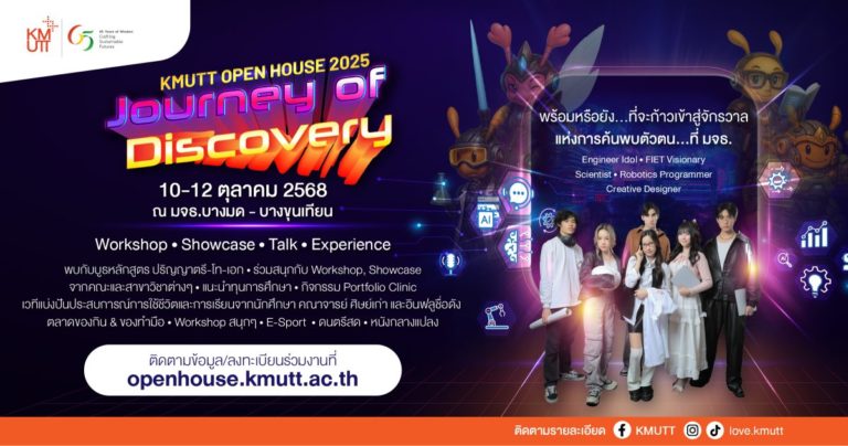 มจธ. จัดกิจกรรม “KMUTT OPEN HOUSE 2025 Journey of Discovery” ร่วมค้นหาตัวตนไปพร้อมกัน จุใจเต็มวัน Day to Night 10-12 ต.ค. นี้ ที่บางมดและบางขุนเทียน 30 ก.ย. 68 10:29