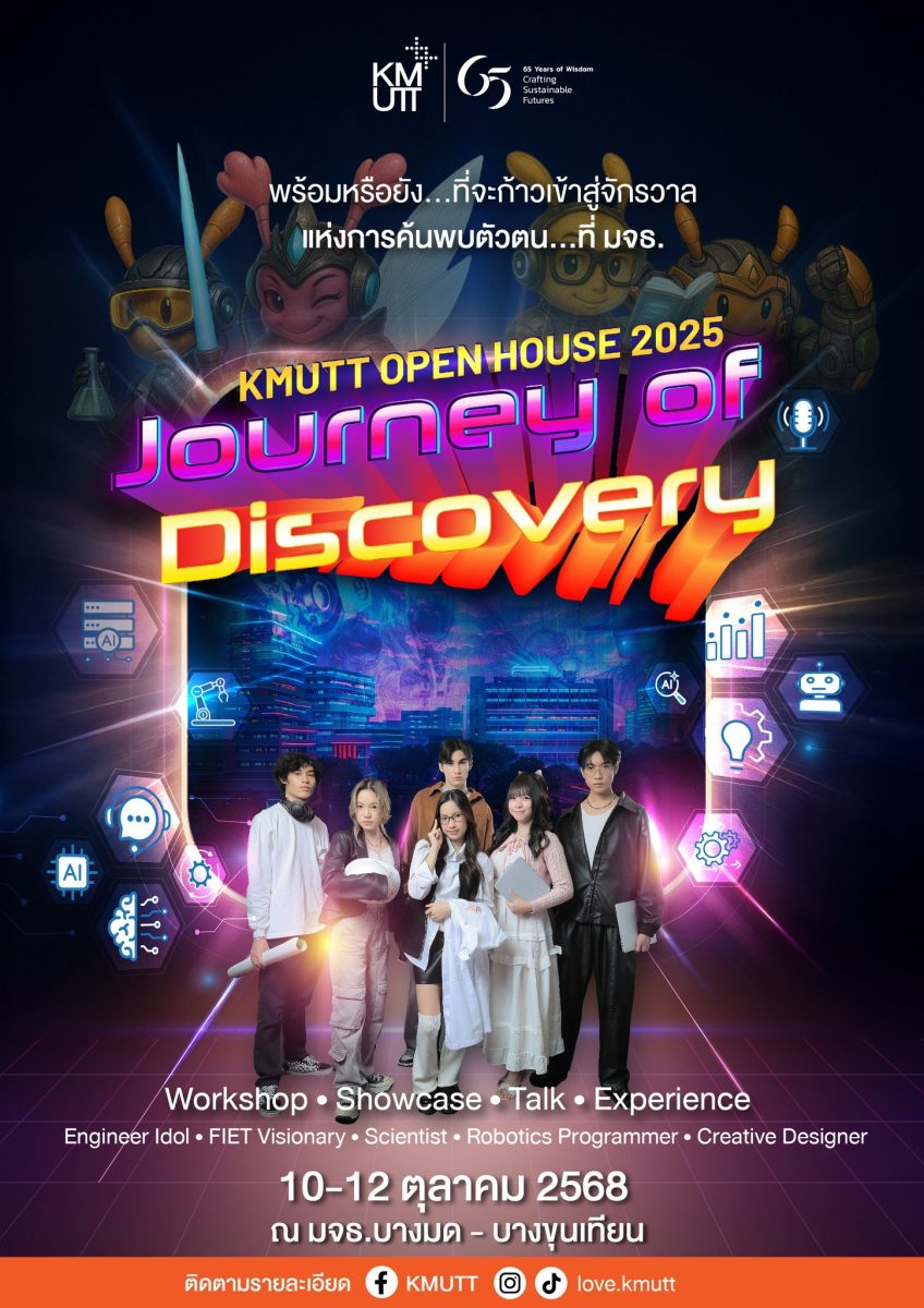 เตรียมตัวให้พร้อม 10-12 ตุลาคม 2568 มหาวิทยาลัยเทคโนโลยีพระจอมเกล้าธนบุรี (มจธ.) เปิดบ้านต้อนรับนักเรียน ครูแนะแนว ผู้ปกครอง และผู้ที่สนใจ ร่วมค้นหาตัวตนไปพร้อมกันกับกิจกรรม “KMUTT OPEN HOUSE 2025 Journey of Discovery”