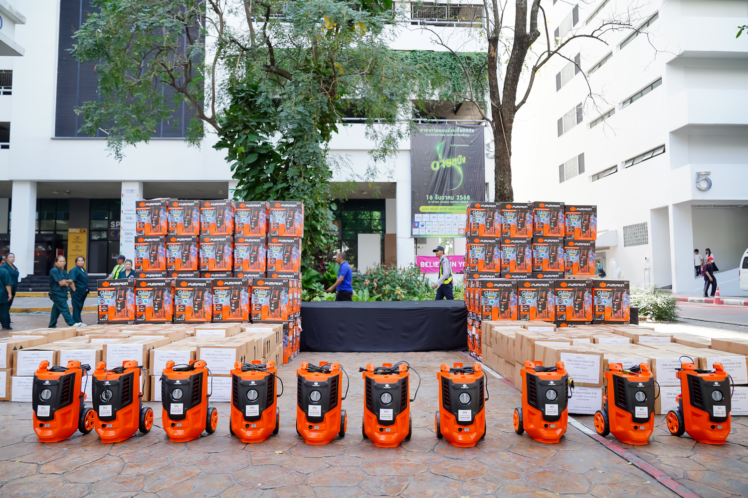 เมื่อวันที่ 2 ธันวาคม 2568 มหาวิทยาลัยศรีปทุม (SPU) ได้ส่งมอบ เครื่องฉีดน้ำแรงดันสูงจำนวน 100 เครื่อง และ เสื้อผ้าจำนวน 5,000 ชิ้น ผ่านกระทรวงการอุดมศึกษา วิทยาศาสตร์ วิจัยและนวัตกรรม (อว.) โดยได้รับเกียรติจาก ศ.ดร. ศุภชัย ปทุมนากุล ปลัดกระทรวงการอุดมศึกษา วิทยาศาสตร์ วิจัยและนวัตกรรม (อว.) เป็นผู้แทนรับมอบ เพื่อนำไปสนับสนุนภารกิจทำความสะอาดบ้านเรือน อาคาร และพื้นที่สาธารณะในจังหวัดสงขลาอย่างเร่งด่วน ซึ่งเป็นงานสำคัญที่ทุกภาคส่วนต้องเร่งดำเนินการทันทีหลังระดับน้ำลดลง ท่ามกลางภาระการฟื้นฟูที่เพิ่มขึ้นอย่างมาก