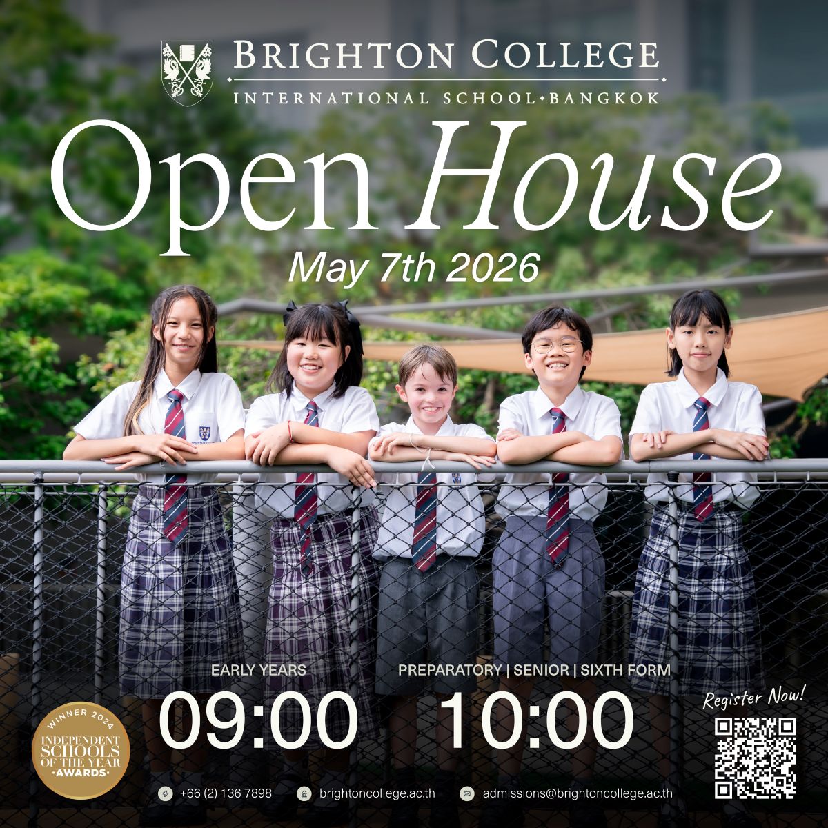 ขอเชิญผู้ปกครองเข้าร่วมงาน Open House ครั้งถัดไปของโรงเรียนนานาชาติไบรท์ตัน คอลเลจ กรุงเทพฯ ในวันที่ 7 พฤษภาคม 2569 สำหรับข้อมูลเพิ่มเติม กรุณาติดต่อ [email protected]