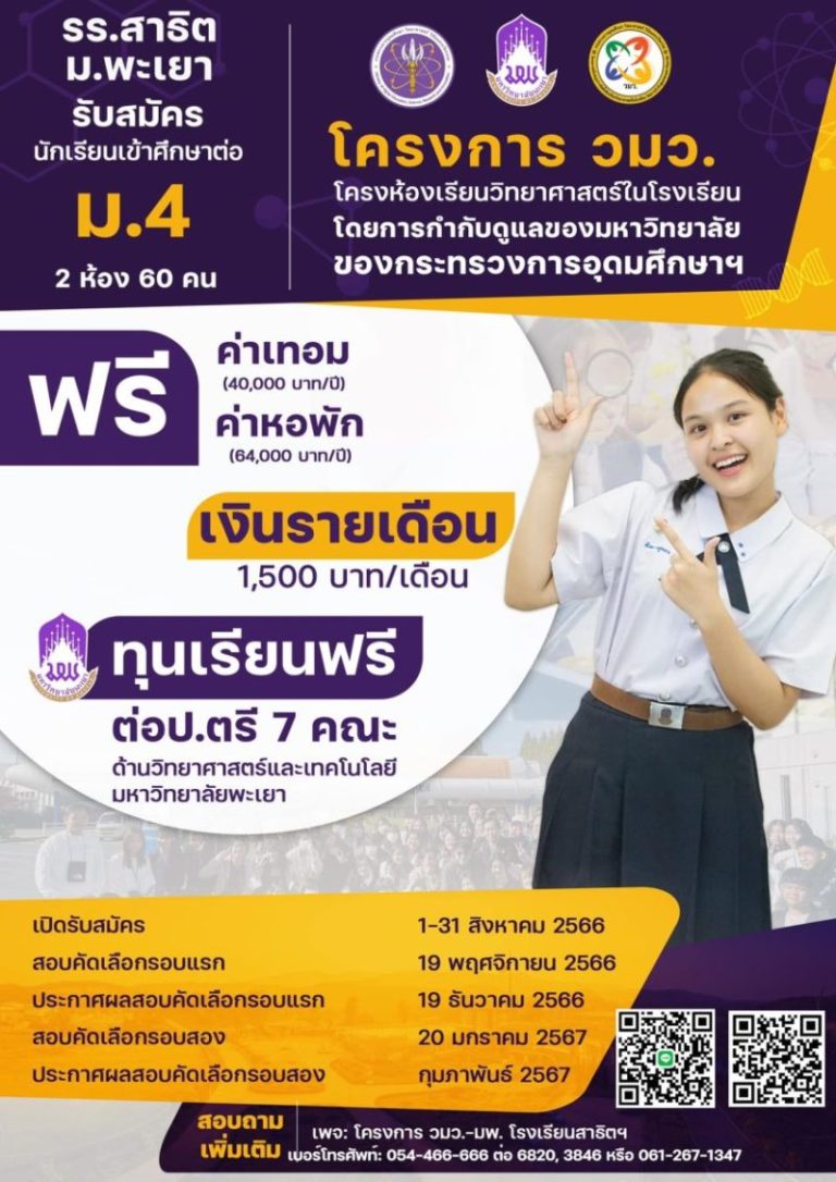โครงการ วมว. โรงเรียนสาธิตมหาวิทยาลัยพะเยา เปิดรับสมัครนักเรียนเข้าศึกษาต่อระดับชั้นมัธยมศึกษาปีที่ 4 ปีการศึกษา 2567 9 ส.ค. 66 12:58