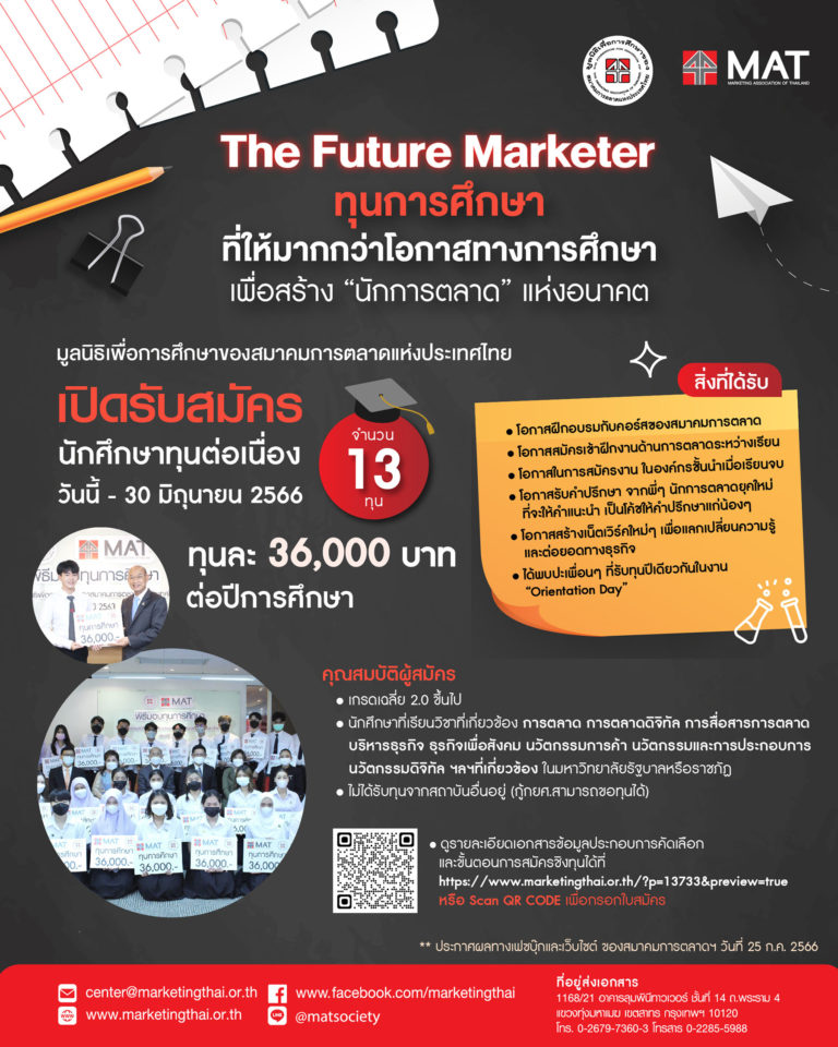 มูลนิธิเพื่อการศึกษาของสมาคมการตลาดแห่งประเทศไทย เปิดรับสมัครนักศึกษาทุน The Future Marketer 23 มิ.ย. 66 16:19