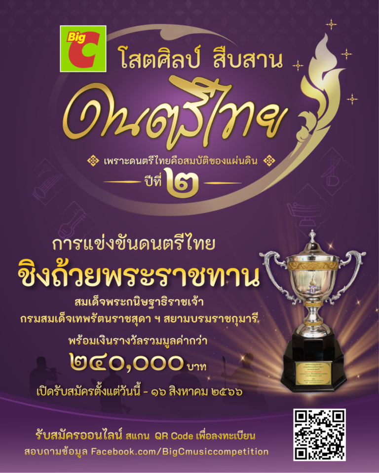 บิ๊กซี ชวนน้องๆ เยาวชน เข้าร่วมโครงการ “บิ๊กซี โสตศิลป์ สืบสาน ดนตรีไทย” เพราะดนตรีไทยคือสมบัติของแผ่นดิน ปีที่ ๒ ชิงถ้วยพระราชทาน 21 มิ.ย. 66 9:44