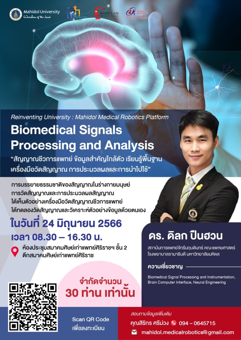 วิศวะมหิดล จัดเวิร์กชอป “การประมวลผลและวิเคราะห์สัญญาณชีวการแพทย์” (Biomedical Signals Processing and Analysis) สมัครวันนี้ – 19 มิ.ย. 66 2 มิ.ย. 66 17:00