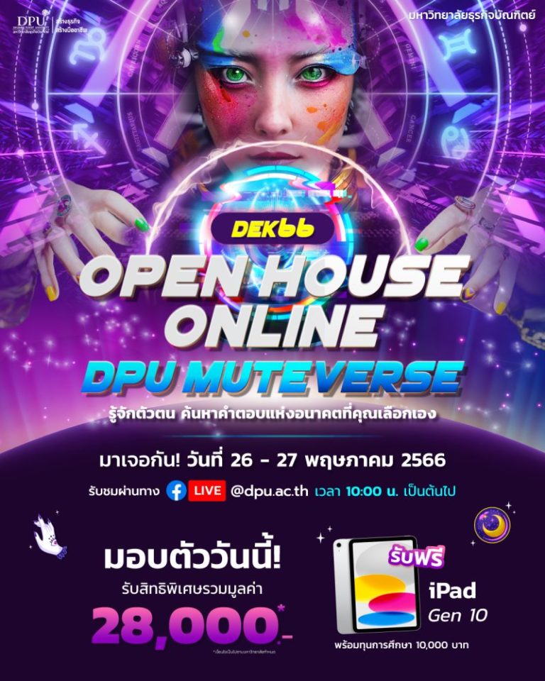 ม.ธุรกิจบัณฑิตย์ ชวนเด็ก ม.ปลาย ค้นหาคำตอบเส้นทางอาชีพสร้างตัวแห่งอนาคต ในงาน DPU OPEN HOUSE ONLINE 26-27 พฤษภาคมนี้ 10 พ.ค. 66 15:35