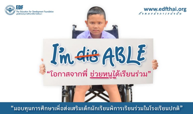 มูลนิธิ EDF ร่วมกับ taejai.com ชวนผู้ใหญ่ใจดีมอบทุนให้นักเรียนพิการในโครงการ “I’m ABLE โอกาสจากพี่ ช่วยหนูได้เรียนร่วม” 10 มี.ค. 66 14:08