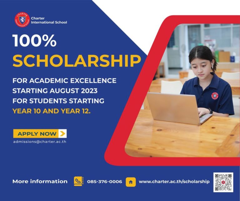 Charter International School Offers 100% scholarships for academic excellence for students starting year 10 and year 12 in August 2023 15 ก.พ. 66 10:14