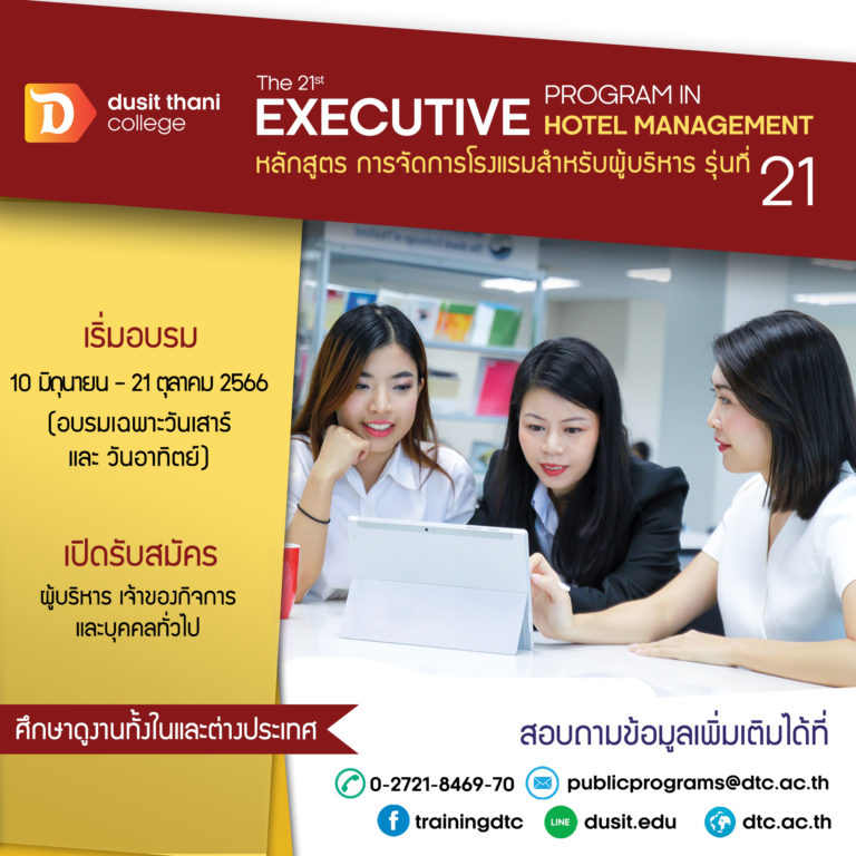 วิทยาลัยดุสิตธานี เปิดอบรมผู้ประกอบการโรงแรมทั่วทุกภาค หลักสูตร การจัดการโรงแรมสำหรับผู้บริหาร รุ่นที่ 21 8 พ.ย. 65 16:15