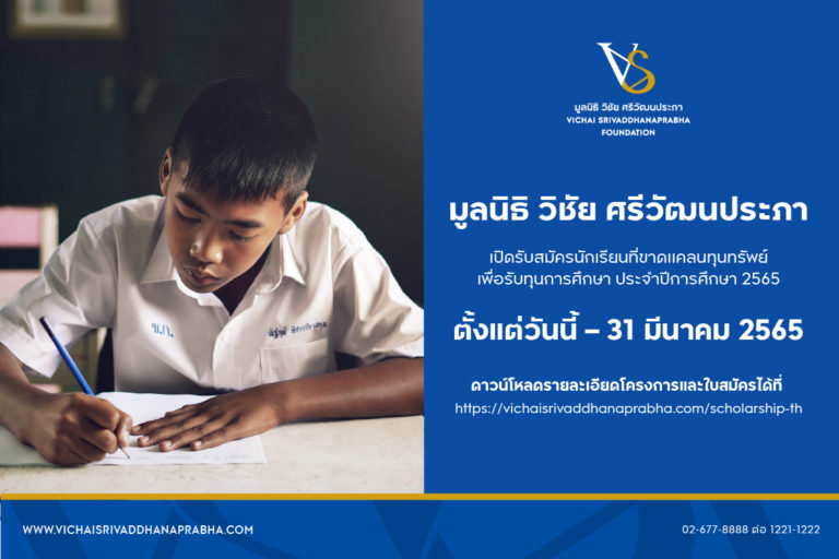 มูลนิธิ วิชัย ศรีวัฒนประภา เปิดรับสมัครนักเรียนที่ขาดแคลนทุนทรัพย์ เพื่อรับทุนการศึกษา ประจำปีการศึกษา 2565 1 ก.พ. 65 11:13