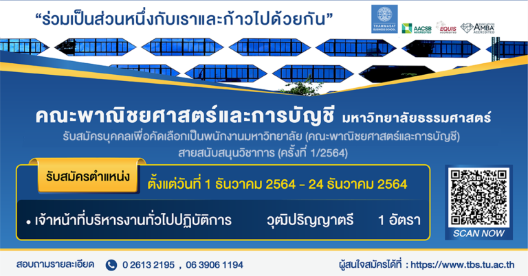 คณะพาณิชยศาสตร์และการบัญชี ม.ธรรมศาสตร์ เปิดรับสมัครพนักงานมหาวิทยาลัย สายสนับสนุนวิชาการ 21 ธ.ค. 64 13:26
