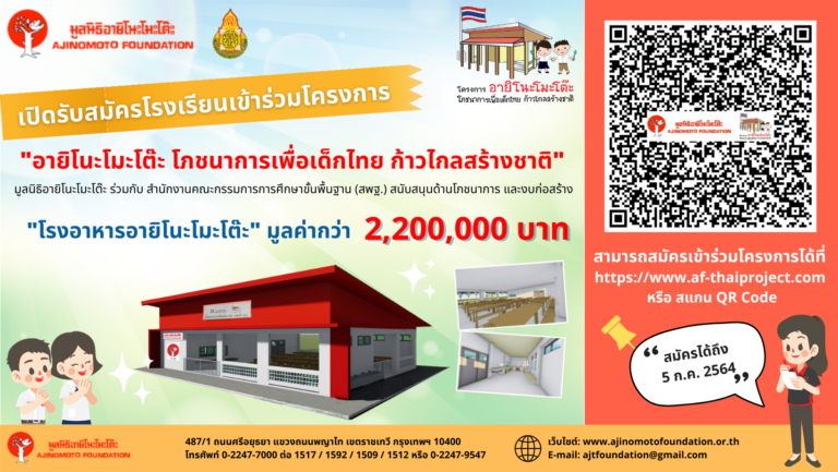 มูลนิธิอายิโนะโมะโต๊ะ เปิดรับสมัครโรงเรียนเข้าร่วมโครงการ “อายิโนะโมะโต๊ะ โภชนาการเพื่อเด็กไทย ก้าวไกลสร้างชาติ” 17 มิ.ย. 64 10:03
