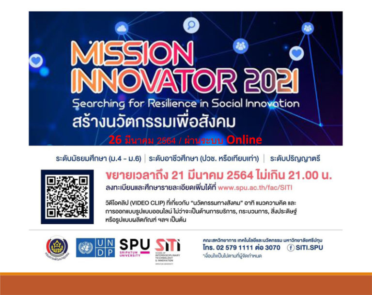 ด่วน! ข่าวดี สำหรับน้องๆ “Mission Innovator 2021” ขยายเวลารับสมัครถึง 21 มี.ค.64 นี้!!! 18 มี.ค. 64 14:53